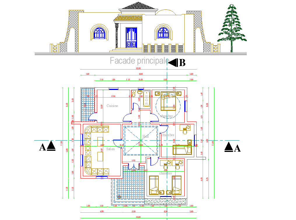 Single Story House project dwg file. the architecture layout plan along with furniture detail and elevation design of house project.