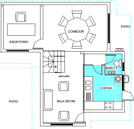 Single Family Residential House Structure Details that includes a detailed view of living room, hall, study room, dining area, kitchen, bedroom, toilets an bathroom and much more of house design.