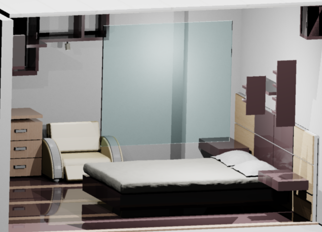 This 3D Bedroom AutoCAD DWG drawing provides a realistic and detailed visualization of a modern interior setup. The design includes key furniture components such as the bed, wardrobe, side tables, wall-mounted shelves, and a comfortable seating area. The layout emphasizes spatial balance and aesthetic appeal, making it suitable for modern residential interiors. The 3D rendered view gives a clear understanding of textures, furniture arrangements, and lighting distribution, helping designers create functional and visually pleasing bedroom environments.