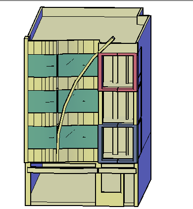 3D Design of Family Building Elevation that includes top view with doors and windows, staircase, balcony and much more of building design.