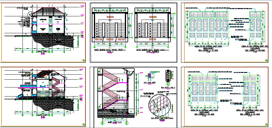 Government Head Quarters Section and Construction Details that includes a detailed view of front and back section, doors and window, staircase construction, wall construction, column and beam details and much more of head quarters design.