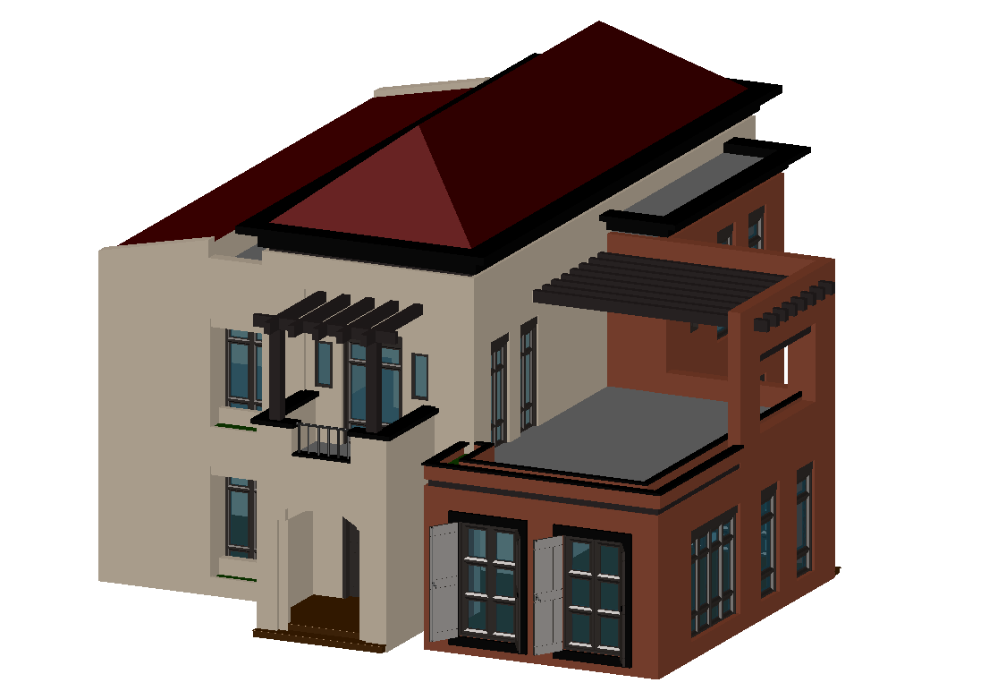 3d House Project autocad file. 3d model of architecture residential house project in autocad format