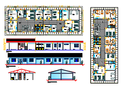 Hospital structure plan view and section view, hospital building ground floor structure elevation and section design planning and detailing