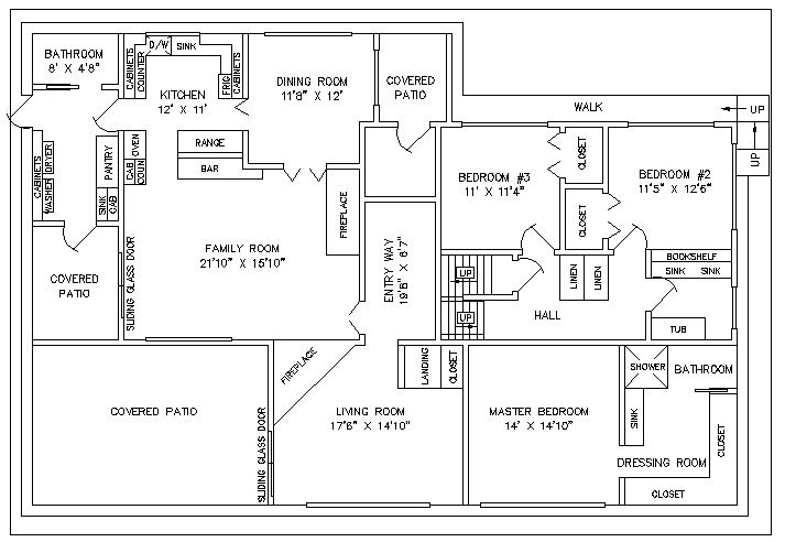 Floor plan of a house with detailed dimension of each rooms like bed room dining room living room kitchen toilets Floor plan of a house.