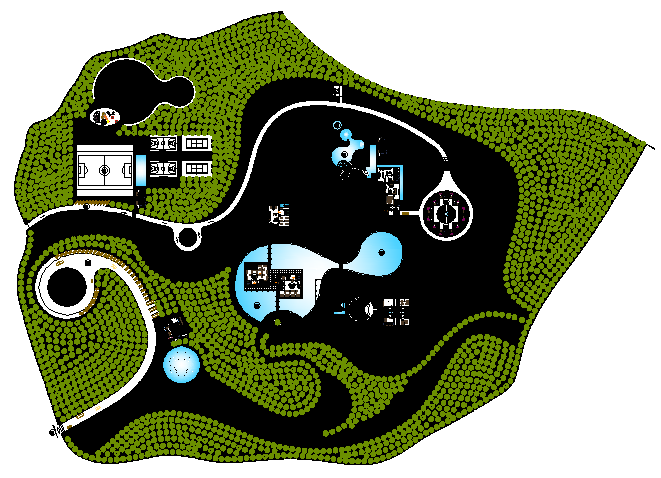 town city view with eco green layout view dwg file, town city view with eco green layout, Greene tourism center, garden, play ground, restaurant, basketball ground, open space, parking area, swimming pool area, walking path