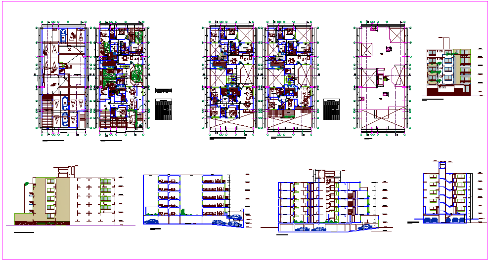 Floor plan,elevation and sectional view with door and window detail for house design dwg file