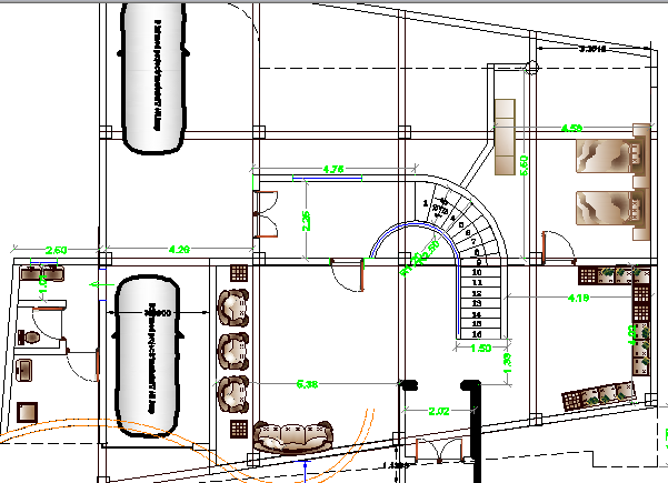 Modern Villa Structure Details that includes a detailed view of main entry door, stairs, living room with furniture details, sitting area, wash area, bedroom, kitchen, washing machine, master bedroom, lobby and much more of villa design.