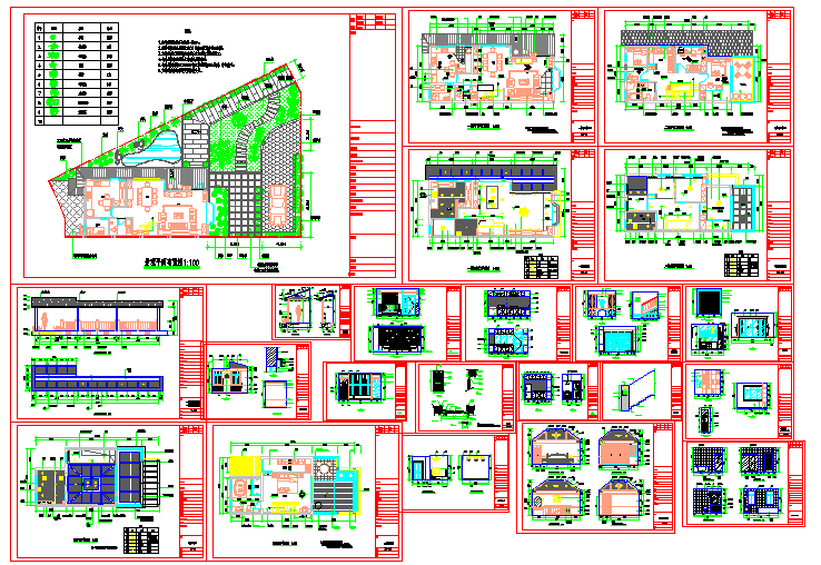 Landscape layout & All Bungalows Detail in cad file, A layer of top layout, Floor plan of the second floor, Outdoor road curb above the pavement, Outdoor green with this map as a reference to the construction of the views of the owners; Car park embedded croquet using hexagonal crooks embedded products, Outdoor solid wood strip to do anti-corrosion treatment. A layer of outdoor gallery top view, Three floor plan, The other facade of the same space has been painted, Second floor living room TV backdrop.