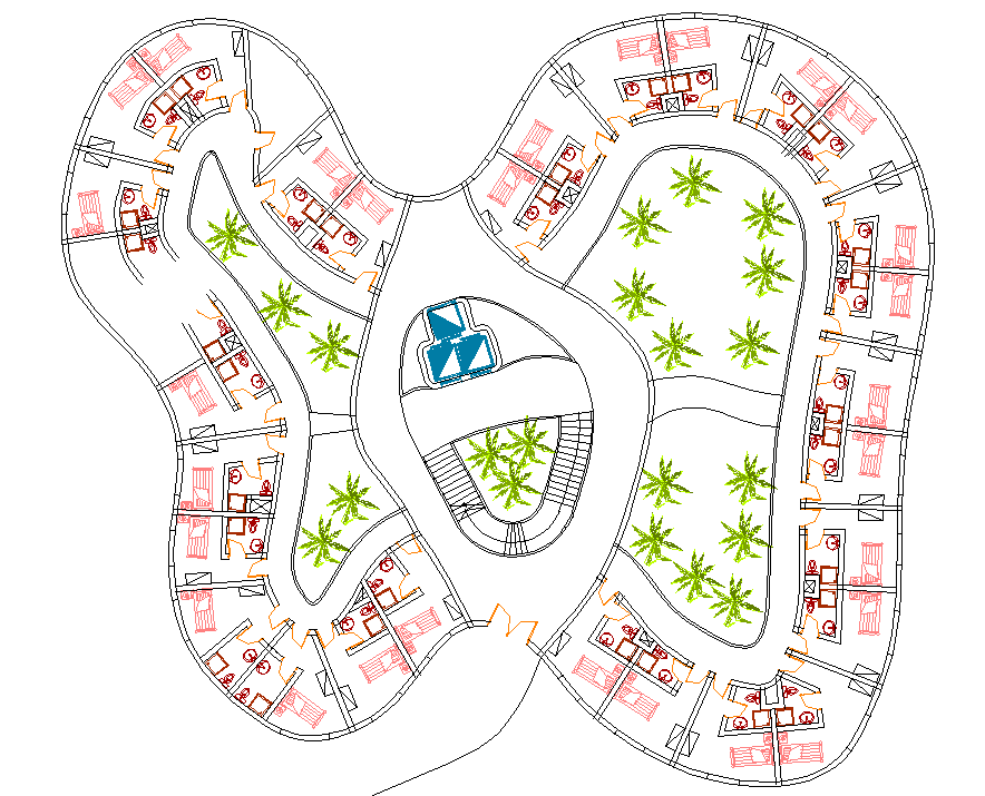 Hotel Single Bedroom layout plan dwg file. The architecture layout plan with furniture detailing, structure plan and landscaping design of hotel project detail view.