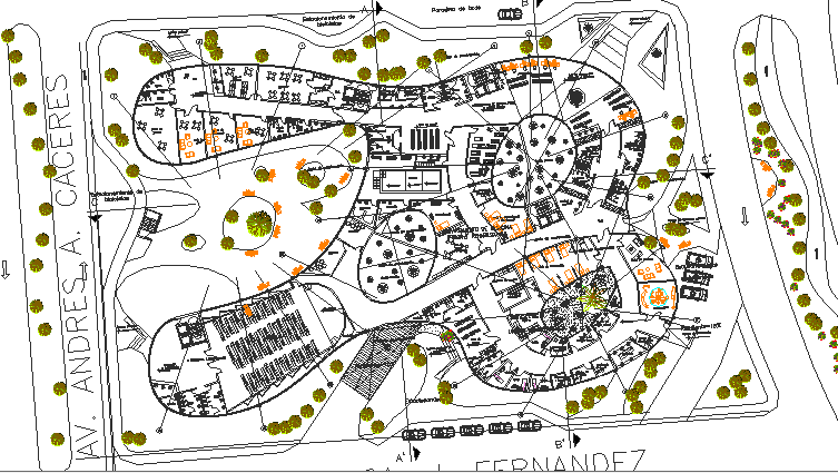 City Clinic Site Plan and Structure Details that includes outdoor roads, indoor roads, car parking, ambulance parking, garden, cafeteria, tree blocks, temple, reception, waiting area, consultant room, patient rest rooms, pharmacy store, toilets for general and staff and much more of clinic site plan and structure details.