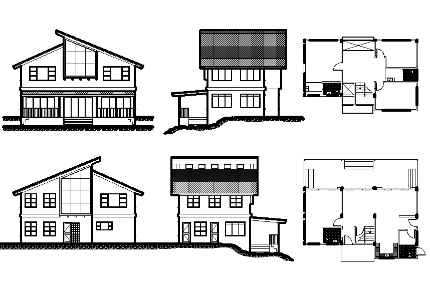 2 story House plan dwg file. the architecture layout plan of ground floor plan and first floor plan, with all side elevation design of 2 story house project detail view.