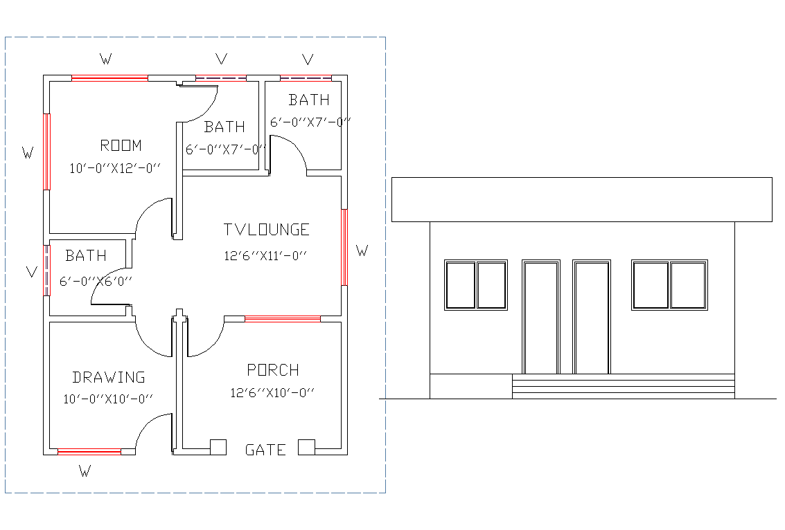 Layout plan with elevation design of house dwg file. find here single level layout plan with elevation design with much more detailing in autocad file.