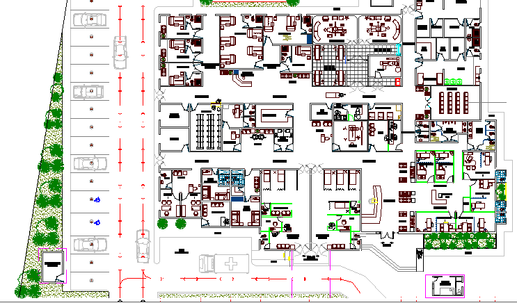Rural Medical Center Architecture Project that includes a detailed view of entry gate, car parking area, ambulance parking area, reception area, waiting lounge, circulation way, consultant rooms, balcony, mini garden area, patient room, x-ray rooms, rest rooms, toilets and much more of hospital center.