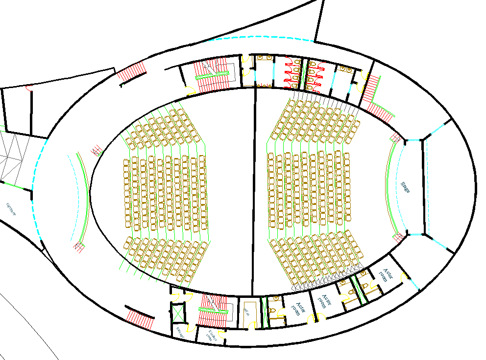 Auditorium layout plan dwg file. find here the architecture layout plan of 2 wide auditorium plan with furniture arrangement in autocad file.