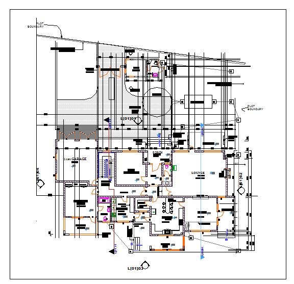 Interior floor plan of a bungalow with two bed rooms living room kitchen toilets dining room bath rooms in two bed rooms and also placing of furniture in each room like wardrobe beds sofas dining chair table with measurements.