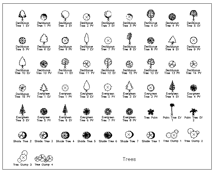 Blocks of trees with different types of trees for both interior and exterior requirements with designs suitable for both accordingly,