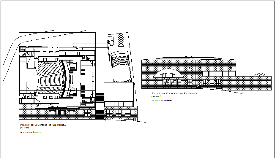 Palace of Congresses building front view dwg file with palace of congresses building view with wall,door and window view.