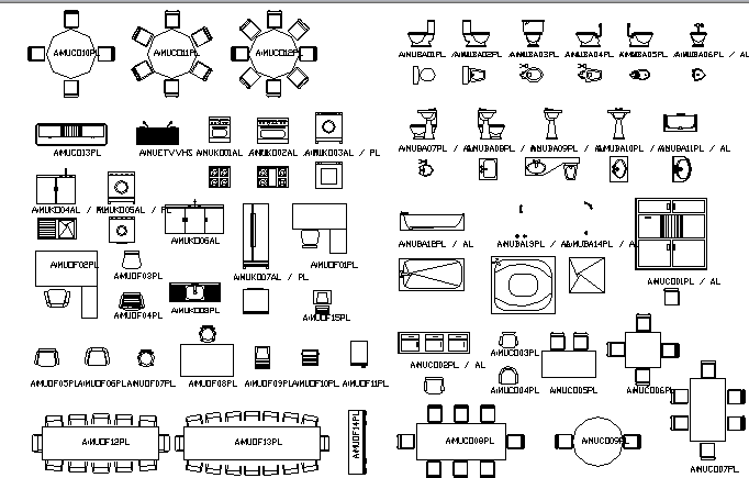 Housing Utility Blocks Design that includes furniture like dining table, small family dining table, joint family dining table,circular table, multi sits dining table, toilet sheets, wash basins, sign boards and much more of housing utility blocks.