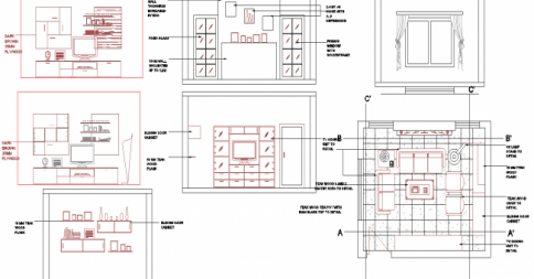 Interior Design House 2D CAD Drawing with Wall Elevation Details