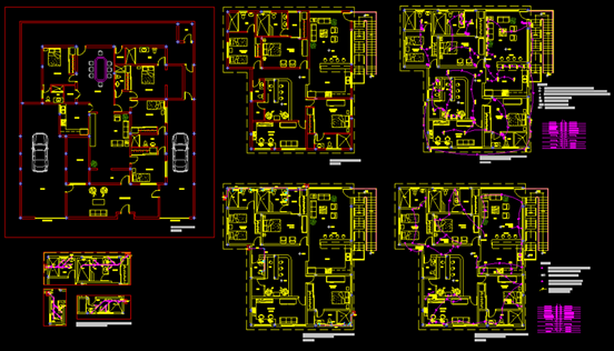 Country House 2D CAD Design with Floor Plans and Electrical Layouts