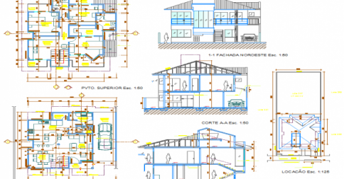 Bungalow Design 2D CAD Drawing with Plans Sections and Views