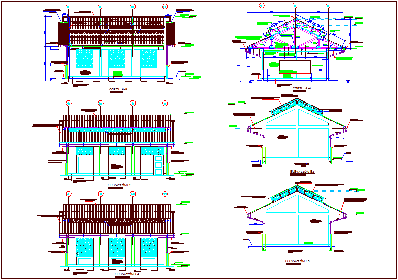 Class room design view with section and elevation view dwg file with section view with