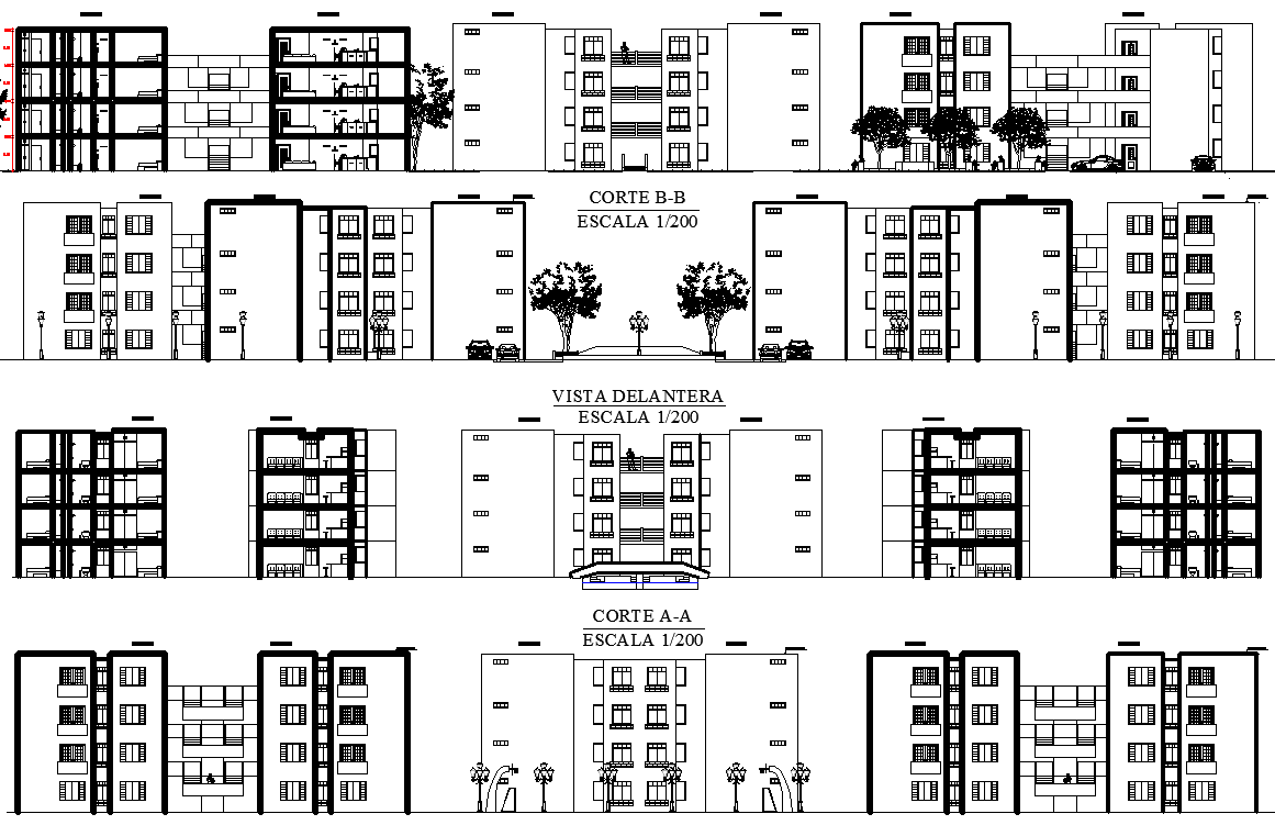 Apartment Project detail dwg file. find here section plan and elevation design of 2 and 3 bedroom apartment project in autocad file.