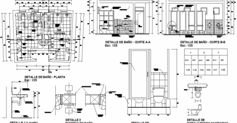 AutoCAD Patient Bathroom 2D CAD Drawing with Plumbing and Sections