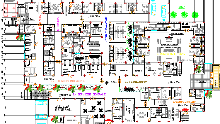 Cancer Specialty Clinic Architecture Project that includes oxygen center, administration, emergency unit, operation theater, car and ambulance parking area, reception area, waiting area, sitting area, consultant room, doctors office, patient room, staircase, passage, lobby, operation theater, laboratory, different specialist department, medical store and much more of cancer specialty hospital details.