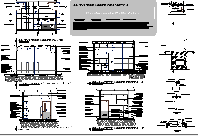 Medical Office Architecture Project that includes a detailed view of wall construction, wall design, column and beam construction, material details, cuts, measurement and much more of medical office project.