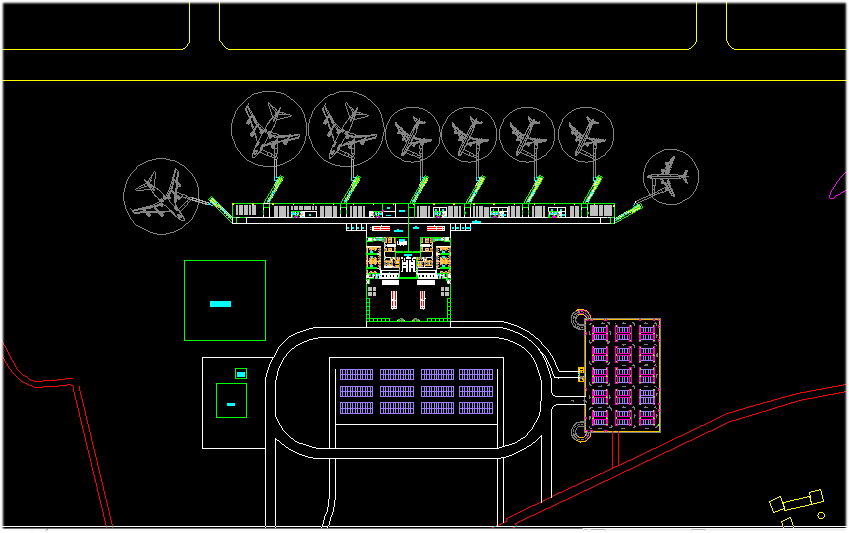 In addition, the airport terminal CAD drawing highlights the functional layout of transport access points, such as taxi stands, parking areas, and entryways for both domestic and international passengers. The plan ensures compliance with modern airport design standards, prioritizing safety, convenience, and aesthetic appeal. It serves as a valuable reference for architects, civil engineers, and project planners working on large-scale transportation infrastructure projects. The integration of service zones, ventilation shafts, and maintenance areas adds technical depth to the design. This drawing is a must-have for professionals seeking high-quality CAD layouts for airport projects, offering clarity in planning, execution, and presentation for terminal design development.