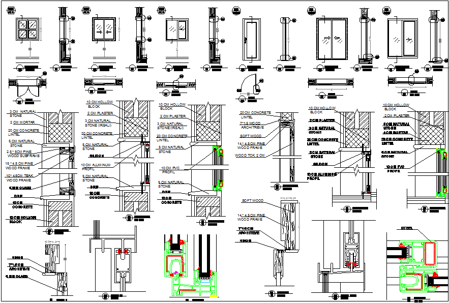 Door and window detail dwg file, door and window detail, door dimesions and attaching wall detail with full dimensions, window dimension and wall mounting detail, chhaja detail, texture detail of door and window, opening direction of door window detail, wall detail etc