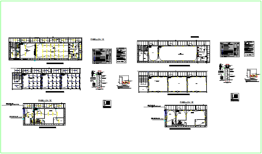 Electrical installation plan for part A and B of school with electrical legend dwg file