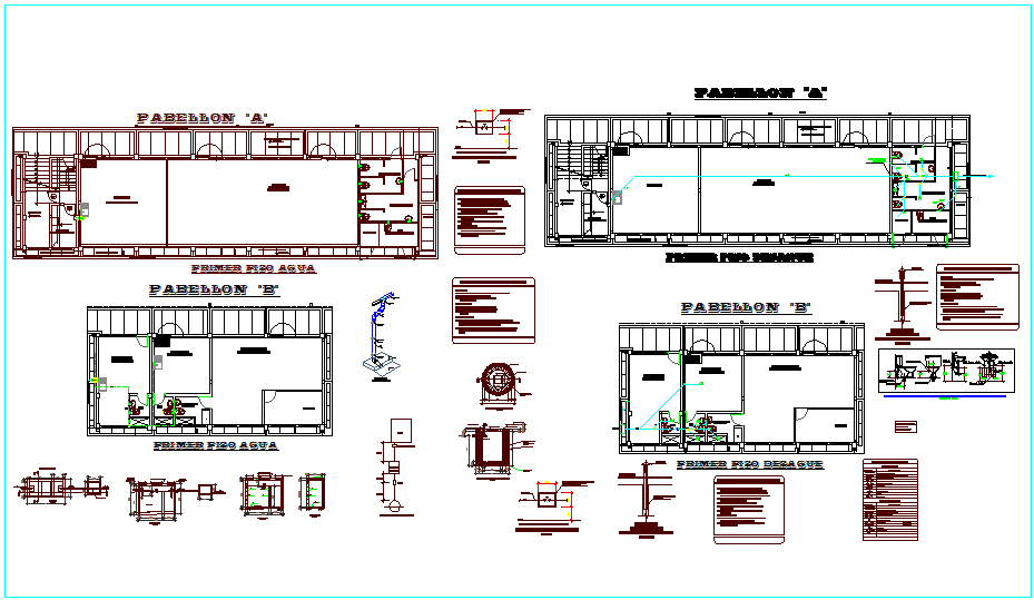Sanitary detail view plan design of school classroom with necessary detail dwg file