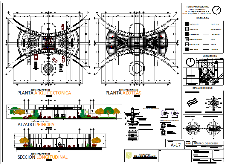 with basement plan view with in and out way view,washing area and monitor controlling system and roof plan view with sectional and elevation view.