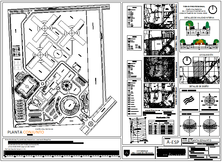 Set plan design view of university with detail view dwg file
