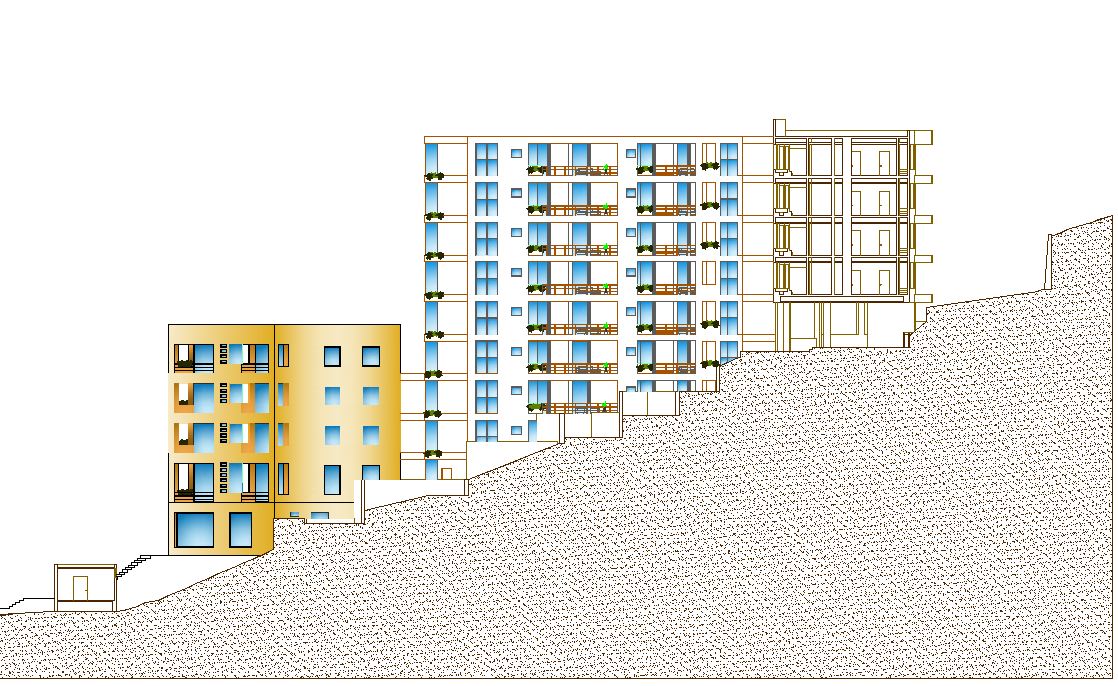 Building Elevation design dwg file. the architecture elevation design of hotel project at hill station, with much more detailing in autocad format.