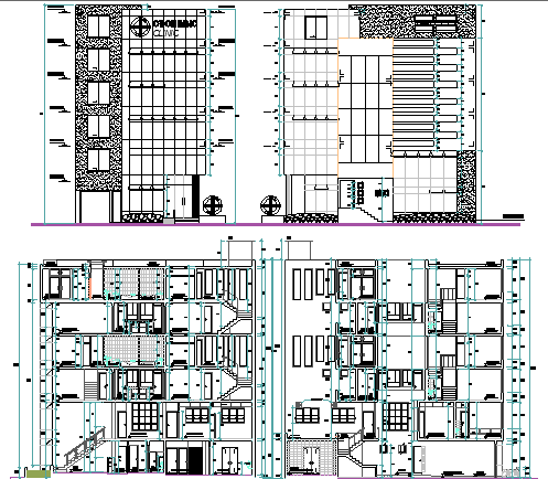 Multi-Flooring City Clinic Elevation and Section Plan dwg file