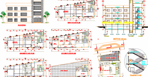 Hotel Building AutoCAD DWG with Floor Plans, Elevations, and Sections