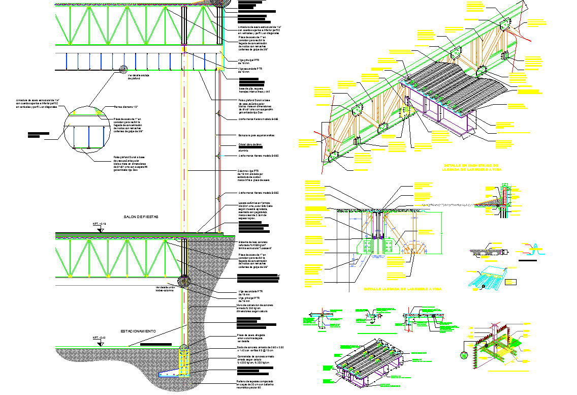 Framing Joint Detail dwg file. Fallow plafond Durok based plaster, acoustic, color matte white in dimensions 61x61 cm with suspension galvanized Dow type 1½ "structural steel frame with top rope and bottom C profile in verticals and profile L in diagonals, Reinforced concrete counter-fence loved according to calculation fy 4200 kg / cm, fc 250 kg / cm Stuffed tepetate filling in 20 cm layers with proctor 90 pneumatic ballerina