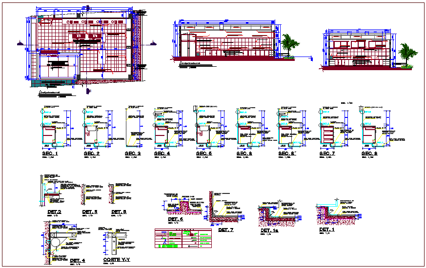 Constriction and detail view of laboratory design with its legend dwg file with view
