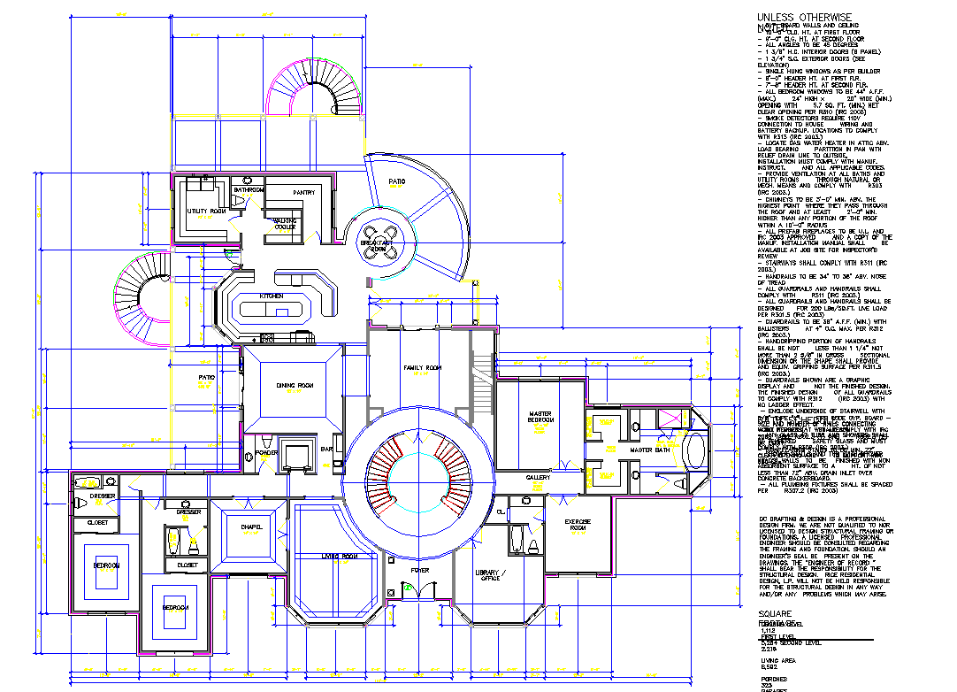 - ALL GUARDRAILS AND HANDRAILS SHALL COMPLY WITH R311 (IRC 2003.)
