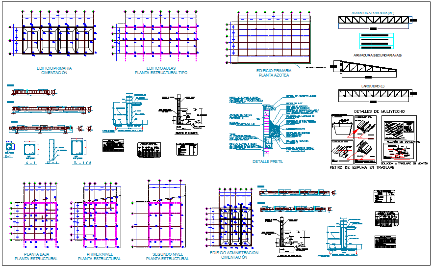 with distribution of area and view of classroom view with column mounting position view and view of column with detail and necessary dimension view.