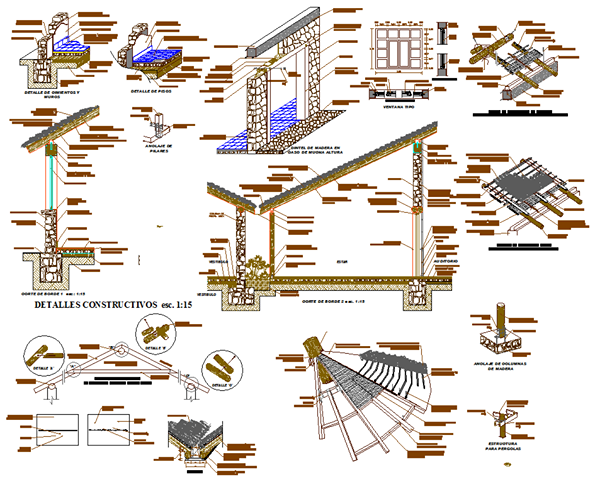 This cabana house CAD drawing provides detailed 2d sectional views that are useful for understanding the structural layout and construction methodology. The drawing shows the framing arrangement, foundation connection, roof slope, and elevation proportions to help guide accurate execution on site. The sectional detailing highlights component layers, support joints, and dimensions that enable precise fabrication and installation. This drawing can be used during planning, approval, and working drawing stages to ensure clarity in design communication. It is particularly well-suited for outdoor leisure structures, resort cabanas, garden shelters, and recreational space planning.