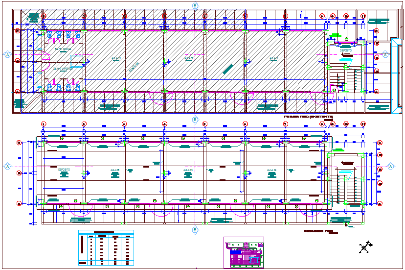 of floor plan view with distribution of area and classroom view,professor room and view of director room with mounting view of door and window with its schedule and detail view with necessary dimension view.