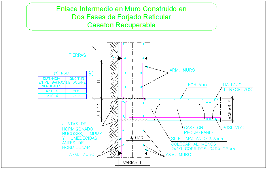 Intermediate Link in Wall Built in Two Phases of Reticulated Slab recoverable joint dwg file