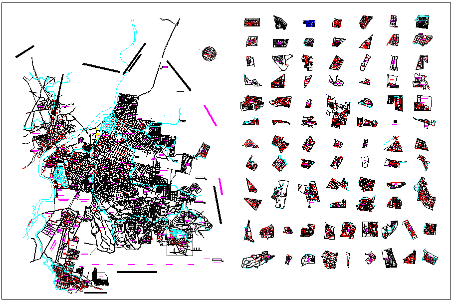 Town plan layout dwg file, town plan detail spotting detail, different town plan layout map