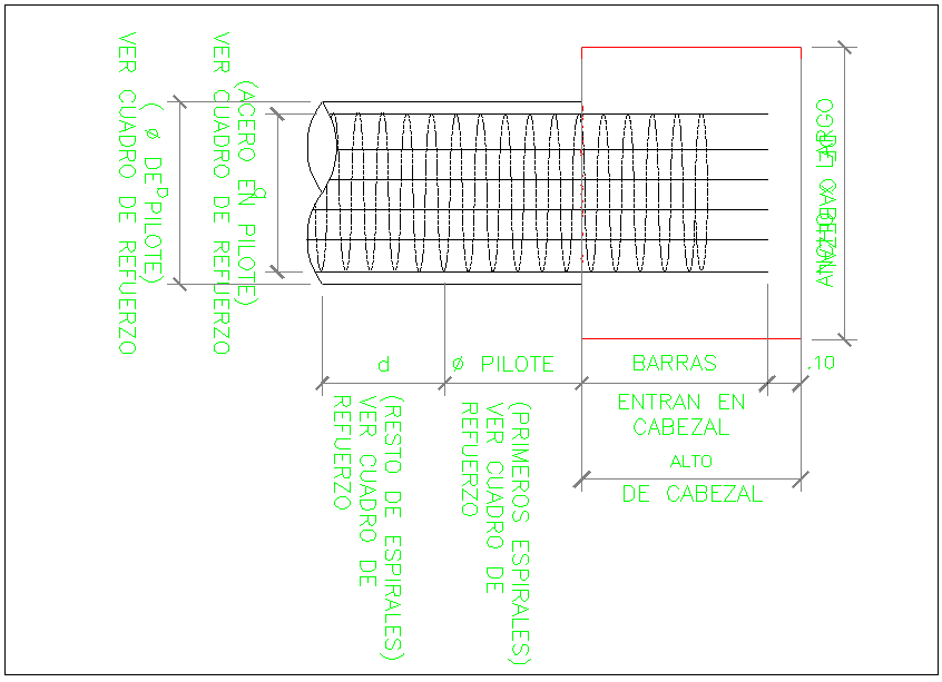 Detail typical head dwg file, detail of typical head pilot, reinforcement, steel detail, spiral head etc