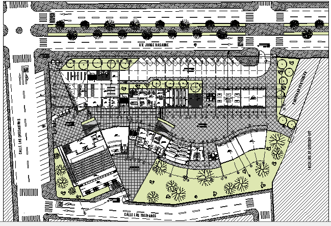 Private College Landscaping and Site Plan Details that includes wide outdoors and indoor roads, staff parking area, student parking area, sports ground, common play ground, tree blocks, walking passage, class rooms library, laboratory, cultural hall, toilets foe staff, toilets for students, staff room, meeting room and much more of college design.