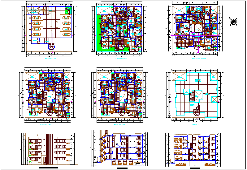 Floor plan,elevation and sectional view of restaurant dwg file with floor plan view with